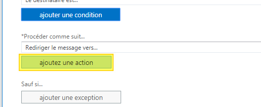 Vous pouvez aussi ajouter un préfixe aux e-mails, ce qui permettra à la personne qui reçoit un e-mail transféré de l'identifier facilement. Sous "Procéder comme suit...", cliquez sur "Ajoutez une action".