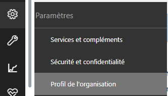 Rendez-vous sur le portail d'administration Office 365. Sur le menu de gauche, sous "Paramètres" cliquez sur "Profil de l'organisation".
