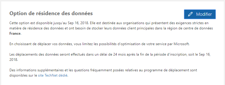 Mais je n’ai pas cette partie « Option de résidence des données » ni le bouton modifier.