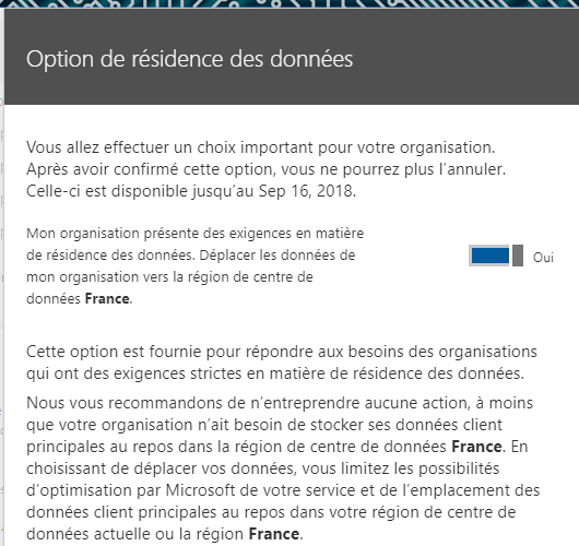 Pour déplacer vos données afin qu'elles résident en France, activez l'option et validez.