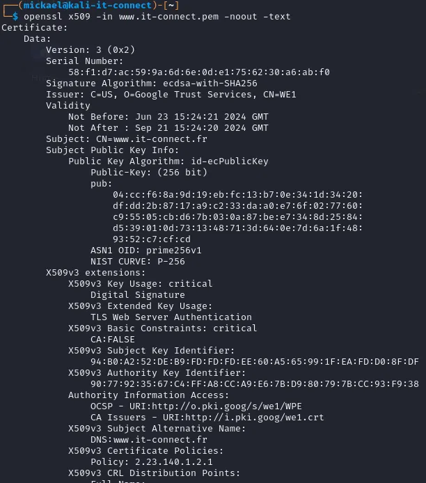 openssl x509 -in www.it-connect.pem -noout -text