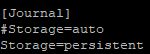 Pour modifier le paramétrage par défaut (où le mode de stockage des journaux est configuré en automatique), il faut éditer le fichier /etc/systemd/journald.conf pour ajouter la ligne suivante :