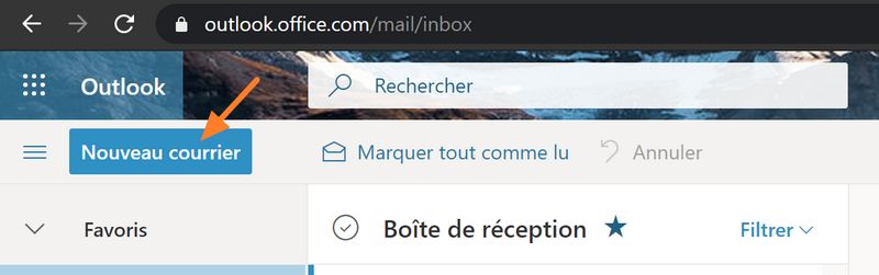 Voyons maintenant comment procéder avec la version Web d'Outlook, accessible depuis un navigateur : Edge, Chrome, Firefox, etc. Cette manipulation fonctionne pour Outlook Web via Office 365 mais également pour un compte Microsoft gratuit (outlook.com, hotmail.com, hotmail.fr).