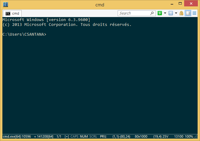 Voici à quoi ressemble l’interface. Par défaut à l’ouverture du programme vous retrouvez une invite de commande Windows :