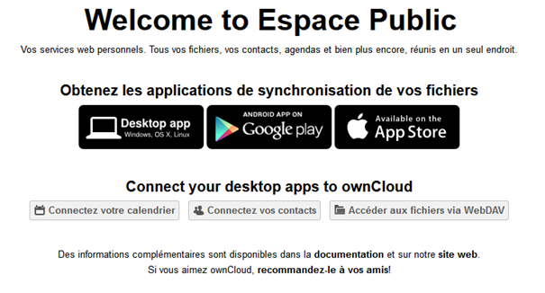 La page dont je vous parle est celle-ci par défaut lors d'une installation de base d'ownCloud :