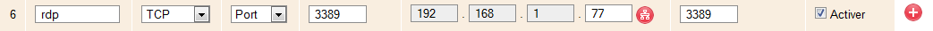 On transmet le numéro de port souhaité à port 3389 sur l’ordinateur, de ce facon je transmet monIP:XXX1 à machine1:3389 et monIP:XXX2 à machine2:3389 car j’ai deux machines derrière mon router