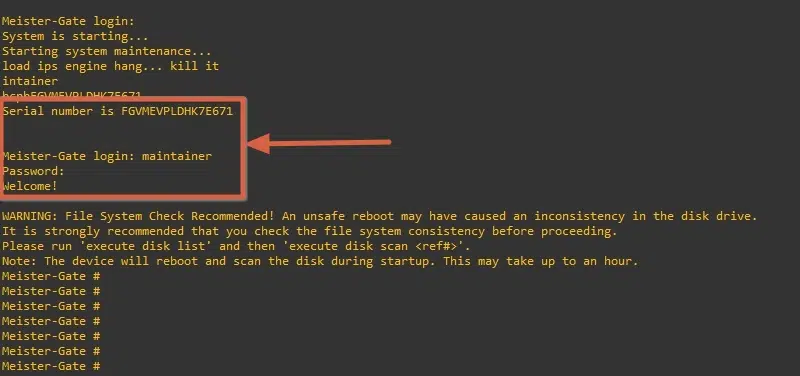 Comme on peut le deviner ici, la réinitialisation du mot de passe administrateur se fait en ligne de commande. Le compte qu'on utilisera pour se connecter au pare-feu s'appelle maintainer. Il s'agit en fait ici d'un super-utilisateur en quelque sorte. Son mot de passe est aléatoire, c'est-à-dire qu'il est constitué au début des caractères bcpb suivi du numéro de série de l'équipement (souvent inscrit sur le pare-feu), chaque équipement ayant bien-sûr un numéro de série propre à lui.
