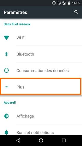 Sur les deux smartphones, il est nécessaire d'activer la NFC et Android Beam. Pour cela, appuyez sur l'icône "Paramètres" dans les icônes. Une fois le menu des paramètres affiché, appuyez sur "Plus".