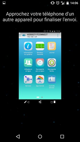 Une fois la connexion établie... Patientez pendant le transfert du fichier... Concrètement, il ne faut pas s'attendre à des miracles au niveau du débit de transfert, lors de cet envoi, la vitesse était d'environ 400 Ko/s ce qui correspond aux limites de la NFC.