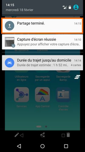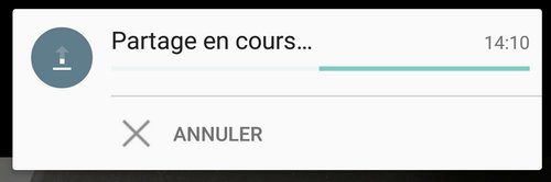 Lorsque le transfert sera terminé, c'est-à-dire que le second smartphone a bien reçu le fichier, la notification "Partage terminé" apparaît sur votre écran, comme ceci :