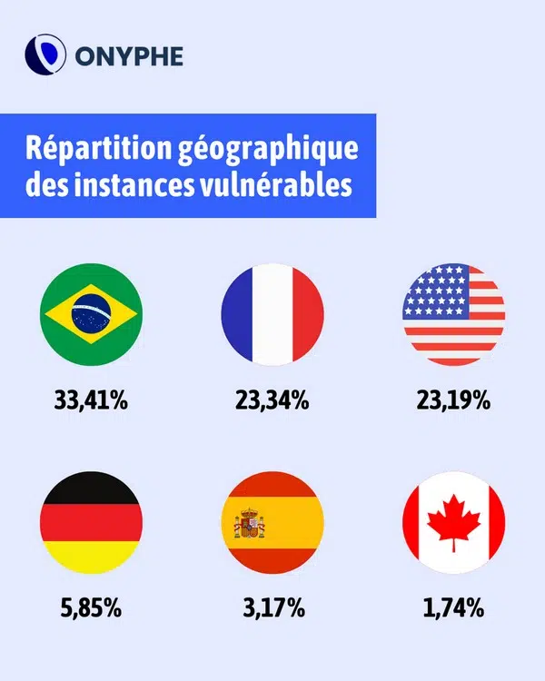 L'infographie ci-dessous met en évidence l'exposition de la France avec près d'un quart des instances GLPI vulnérables.