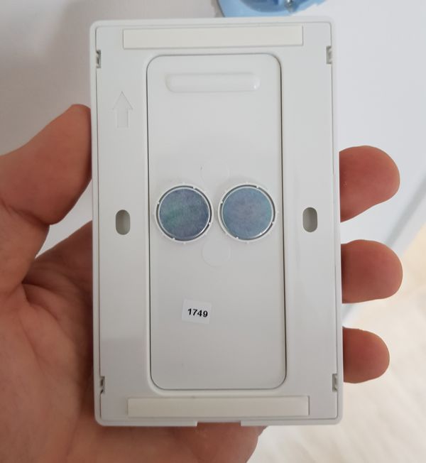 La platine fournie avec l'interrupteur Philips Hue Dim Switch peut être collée au mur ou visser pour rester sur une installation traditionnelle, en fonction de votre installation. La télécommande va ensuite être positionnée sur la platine grâce aux aimants positionnés à l'arrière de celle-ci.