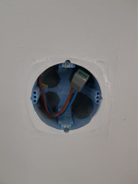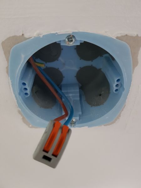Maintenant, vous avez la boite d'encastrement en visuel avec les fils connectés à votre interrupteur, il va falloir les retirer. Pour fermer le circuit, nous allons utiliser une borne de connexion type Wago - Ce qui nous donne :