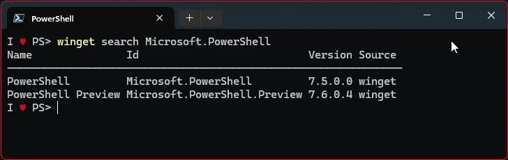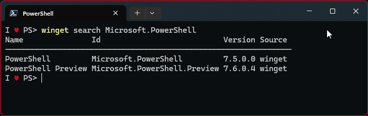 PS > winget search Microsoft.PowerShell