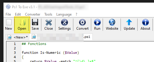 Une fois l'installeur téléchargé, installez le logiciel qui s'avère assez léger. Il va falloir ouvrir dans le logiciel le script PowerShell que vous souhaitez convertir.