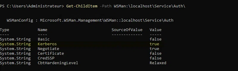 Get-ChildItem -Path WSMan:\localhost\Service\Auth\