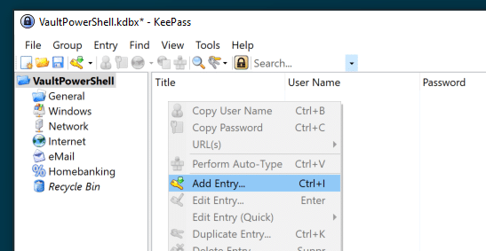 Path = "C:\TEMP\POWERSHELL\VaultPowerShell.kdbx"