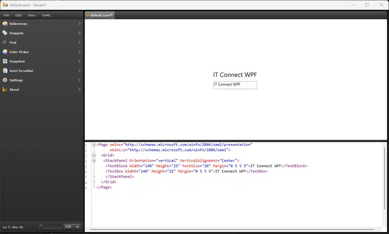 L’avantage de Kaxaml, c’est qu’il est gratuit, léger et portable et nous le verrons plus en détail, nous avons le rendu en temps réel. Il supporte aussi des références pour l’ajout de thèmes (pour les thèmes, il suffit d’ajouter des références dans Kaxaml et d’ajouter les DLL du thème souhaité.).