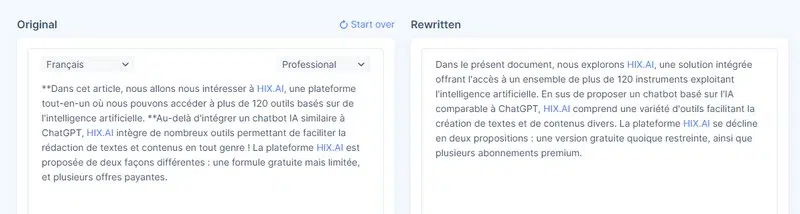 Vous pouvez tester HIX.AI et l'utiliser gratuitement (sans avoir à saisir vos numéros de carte bancaire !). Toutefois, vous avez une limite dans l'utilisation de chaque outil.