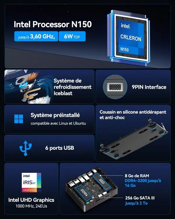 | Geekom Air12 lite | Intel N150 | 8 Go + 256 Go | 179 € | 152.15 € |