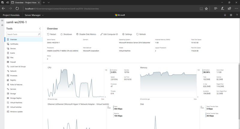 Microsoft a donc eu l'idée d'annoncer un nouveau projet : Project Honolulu. Une outil de gestion, en mode graphique, avec une interface full web. Cette nouvelle interface d'administration de Windows Server sera disponible dans la version Windows Server 2016 preview 1709. Cette nouvelle interface ne représentera pas de coût additionnel pour pouvoir être utilisée.