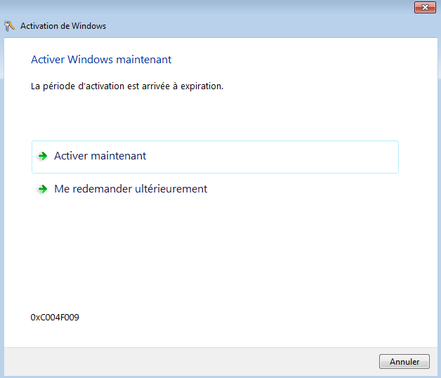 Si vous n'activez pas Windows après l'avoir installé, vous avez le droit à une période d'évaluation de 30 jours, et après vous êtes forcé d'activé votre version de Microsoft ou alors vous êtes face à un écran noir et on vous indique que cette copie de Windows n'est pas authentique.