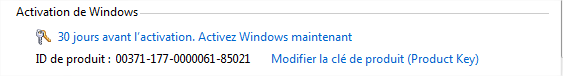 Nous allons vérifier que cela a bien fonctionner même si on peut le remarquer en retrouvant un Bureau avec un fond d'écran personnalisé et l'absence du message d'activation au démarrage. Pour vérifier, faites Démarrer puis clic droit sur "Ordinateur", descendez dans la fenêtre et vérifiez que vous avez ceci :