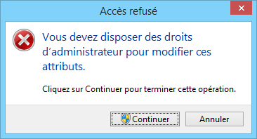 Pour effectuer cette modification, les droits d'administrateur sont nécessaires d'où cette intervention de l'UAC. Cliquez sur "Continuer" pour effectuer l'opération.