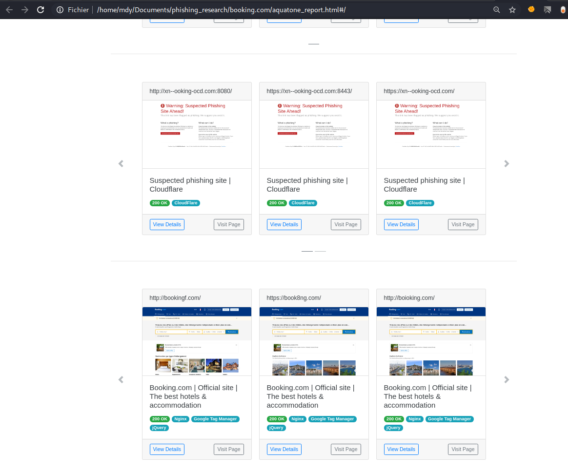 Après avoir mis tous les noms de domaine récoltés via dnstwist et urlcrazy dans un simple fichier texte, on utilise se dernier avec aquatone :