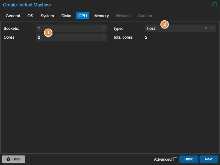 2 - Sélectionner le type de processeur "Host". En effet, le CPU de type Host pour une VM Windows 11 permet d'exposer toutes les fonctionnalités du processeur physique, ce qui garantit la compatibilité avec les exigences matérielles de Windows 11 (et certaines applications). En somme, c'est bénéfique pour la stabilité de la VM.