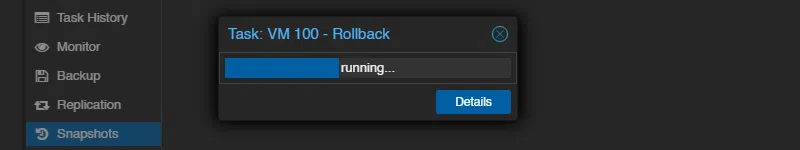 Pour restaurer le snapshot que nous venons de créer, nous devons utiliser la commande qm rollback de cette façon :