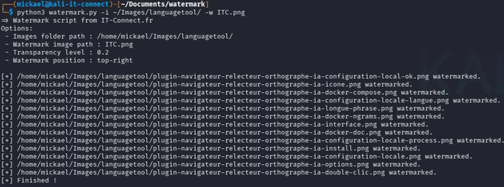 Ce script est un outil simple et efficace pour ajouter un filigrane à vos images. Il est facile à utiliser et personnalisable selon vos besoins. Nous l’utilisons régulièrement pour nos contenus IT-Connect.