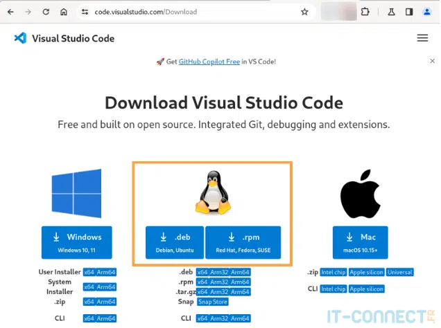 Sur cette page, téléchargez la version ".deb" si vous êtes sur Debian, Ubuntu ou dérivés et la version ".rpm" si vous êtes sous Red Hat, Fedora, CentOS ou dérivés :