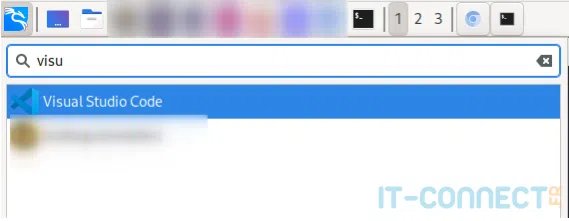 À présent, vous devriez retrouver l’application Visual Studio Code dans le menu de recherche :