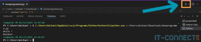 Cela permet d’avoir une meilleure intégration de Python dans VS Code et d’exécuter vos programmes sans passer par la ligne de commande !