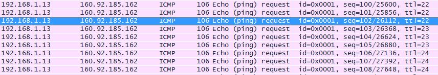 On voit donc bien l'incrémentation du TTL une fois un routeur passé (dans les cadres rouges).