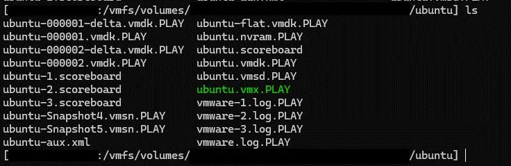 Lorsque la variante Linux du ransomware Play est exécutée sur un serveur ESXi, elle procède à l'analyse et à l'arrêt de toutes les machines virtuelles. Ensuite, l'opération de chiffrement débute. Chaque fichier de la VM, c'est-à-dire le fichier de configuration, le disque virtuel, etc... est chiffré et hérite de l'extension ".PLAY".