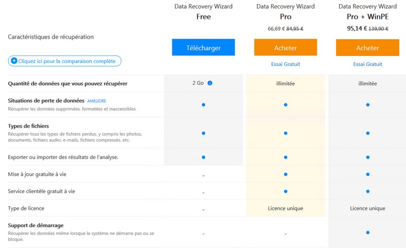 Avec la version Pro, il est important de préciser que vous bénéficier du support et des mises à jour à vie sur ce logiciel, ce qui est intéressant, car il n'est pas nécessaire de payer à nouveau pour mettre à jour le logiciel. L'édition qui prend en charge WinPE comprend un disque de démarrage pour récupérer des données sur un système qui ne démarre plus correctement.