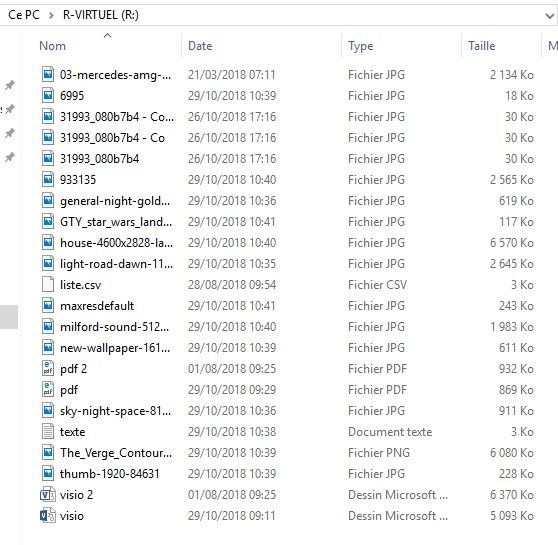 Afin de tester l'efficacité du logiciel, j'ai tout simplement simulé une perte de données. Sur une machine, j'ai les données suivantes sur le lecteur "R" (22 fichiers) :