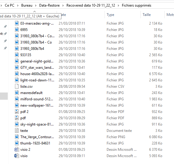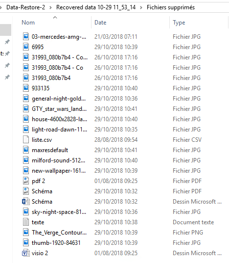 Cette fois-ci encore, le logiciel a récupéré l'intégralité de mes données ! Seuls deux fichiers n'ont pas le bon nom, ils ont un ancien nom (je les avais renommés), mais l'essentiel c'est bien qu'ils soient là.