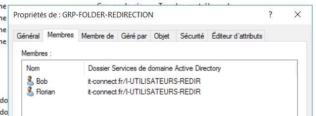Add-ADGroupMember -Identity "GRP-FOLDER-REDIRECTION" -Members Florian, Bob