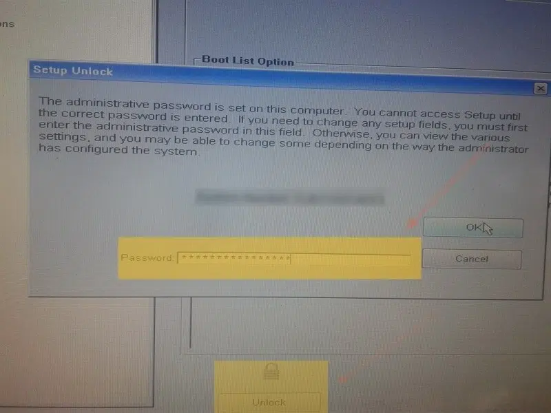 D’abord, on met le laptop en marche et on appuie la touche F2 du clavier pour essayer d’avoir accès au BIOS/UEFI. Une fois dans le BIOS/UEFI, on est invité à saisir le mot de passe Admin. L’ayant bien sûr oublié et tentant d’y introduire un mot de passe quelconque, le laptop renvoie alors un message de « mot de passe incorrect ».
