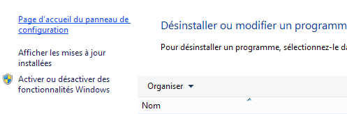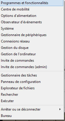 Il faut commencer par faire un clic droit sur l'icône Windows puis aller sur "Programmes et fonctionnalités" :