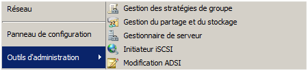 Sur votre serveur, accédez à la console « Gestion des stratégies de groupe » en cliquant sur « Démarrer » puis « Outils d’administration ».