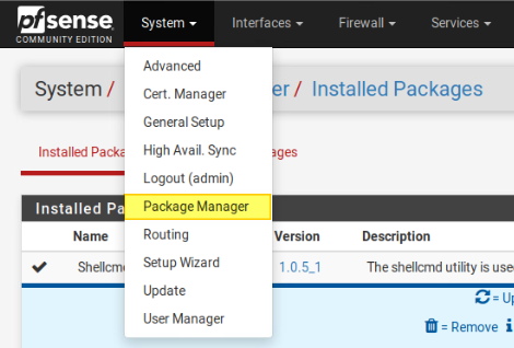 A partir de l'interface web de pfSense, nous allons installer le paquet "squid". Pour cela, accédez au menu "System" puis "Package Manager".
