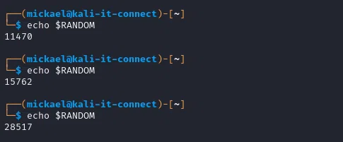 La variable d’environnement "$RANDOM" est une variable intégrée dans Bash qui génère un nombre aléatoire à chaque fois qu'elle est appelée, voyez plutôt :