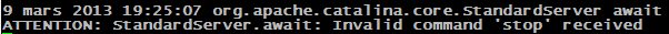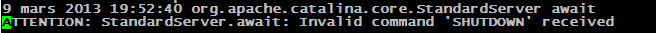 Nous aurons une extinction du serveur ainsi que ces différentes lignes dans le fichiers "logs/catalina.out" :