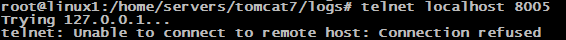 Il faut se connecter en telnet en local depuis une connexion SSH pour pouvoir l'utiliser. En effet, le port 8005 n'est accessible uniquement en local. Quiconque aura une connexion en local sur le serveur (type SSH) pourra avoir accès au port 8005 :