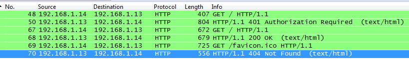 Pour rappel, le fichier contenant les identifiants est créé avec la commande "htpasswd -c .htpasswd user". Lors d'une connexion et d'une authentification, nous écoutons le trafic avec un analyseur de paquets comme Wireshark, voici le résultat que nous avons :