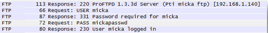 Ici, l’utilisateur micka amorce une connexion avec le serveur (192.168.1.140) et déclare être l’utilisateur «micka» (seconde ligne). La troisième ligne est une demande de mot de passe du serveur pour l’utilisateur « micka ».